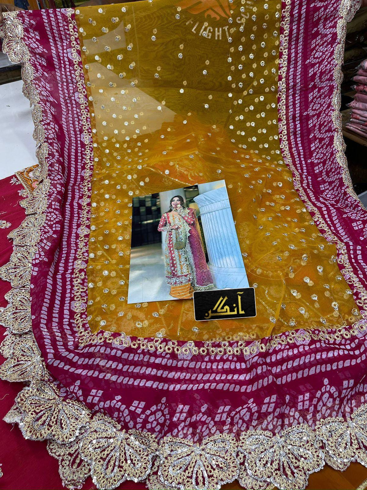 - Dupatta: Organza tie & dye, ready to wear